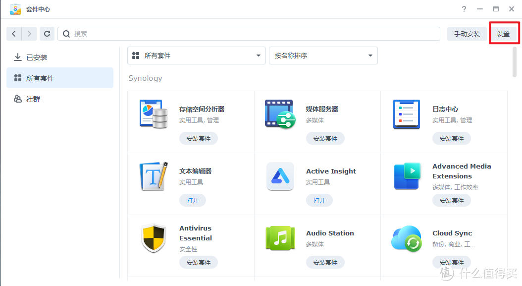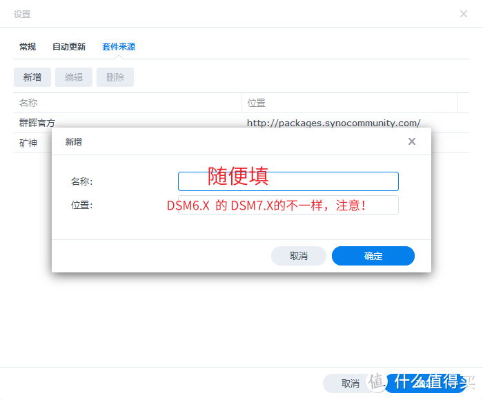 根据自己的群晖系统,在套件中心添加矿神大佬的套件源(自行搜索:我不是矿神)