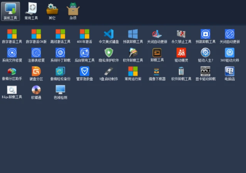其它分类中,有几个特别实用的工具,建议大家试过用一下,绝对好用!第一个是截图工具,软件内置的是Snipaste截图神器,系统32位和64位都可以用,这款截图神器拥有8大类图片标注工具和全功能调色板。另外就是它的贴图功能,它可以将几乎所有类型的图片贴在电脑屏幕上,并且支持对贴图进行各种标注、旋转等功能,简直不要太好用!软件共有四个分类,分别是:装机工具、常用工具、其它、杂项;接下来看下,每一个分类中所包含的各种实用小工具。装机工具中,包括:激活工具、卸载工具、后台禁用工具、文件和注册表修复工具、镜像下载器以及硬盘分区助手等...