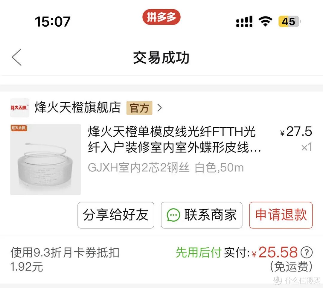 在多多又花了20买了些工具,网线钳是借的,发现光纤线也便宜,又买了50米光纤线,光纤建议买双芯的,最好是分离式光纤线,我是后来才知道有这种易剥离式光纤,叫广电皮线光纤。