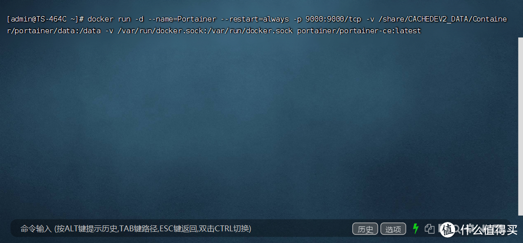 接着就是输入部署命令,安装最新版的官方Portainer。这里直接分享三种命令的安装方法,小伙伴们可以根据需求用其中之一便可!