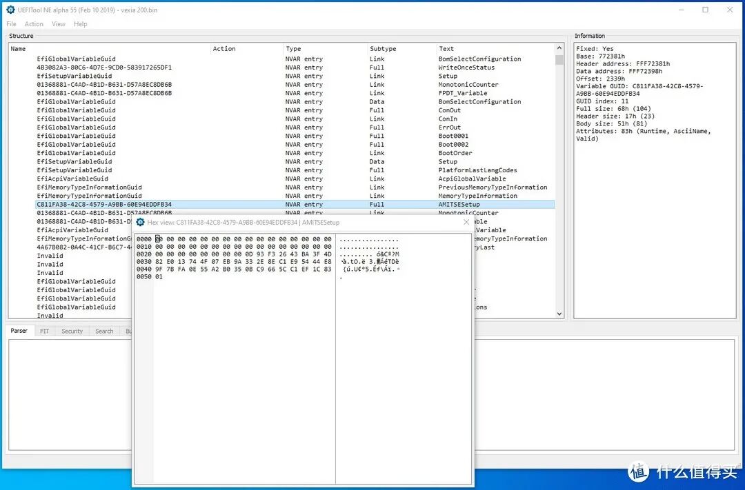 关于破解,网上是有一些相关资料可以参考的。常见的参考案例中,使用BIOS工具进行分析提取出的bin文件,一般BIOS的密码设置都存在AMITSESetup块里面,一般经过查找,能够找到并且解出。理论上是不难,提取BIOS也很顺利。