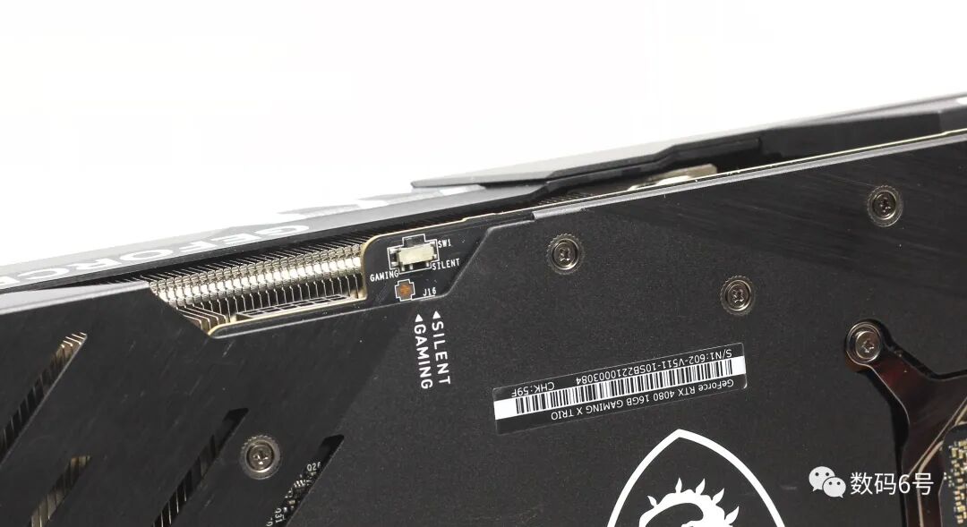 RTX4080 GAMINGX TRIO 16G魔龙拥有物理双BIOS开关,使它拥有更强性能GAMING模式和更低噪音SILENT模式之间自由切换。它的12PVHPWR16针电源连接器还内置保险丝提供额外的防护。导热垫为PCB元件提供额外的散热支持。