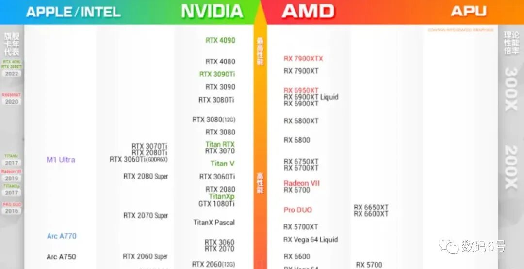 最新的显卡天梯榜单,大家可以看出RTX4090一骑绝尘,RTX4080则是以一敌二,和RX7900XTX/RX7900XT死缠烂打,RTX4070Ti则在剩余的型号中独占鳌头。