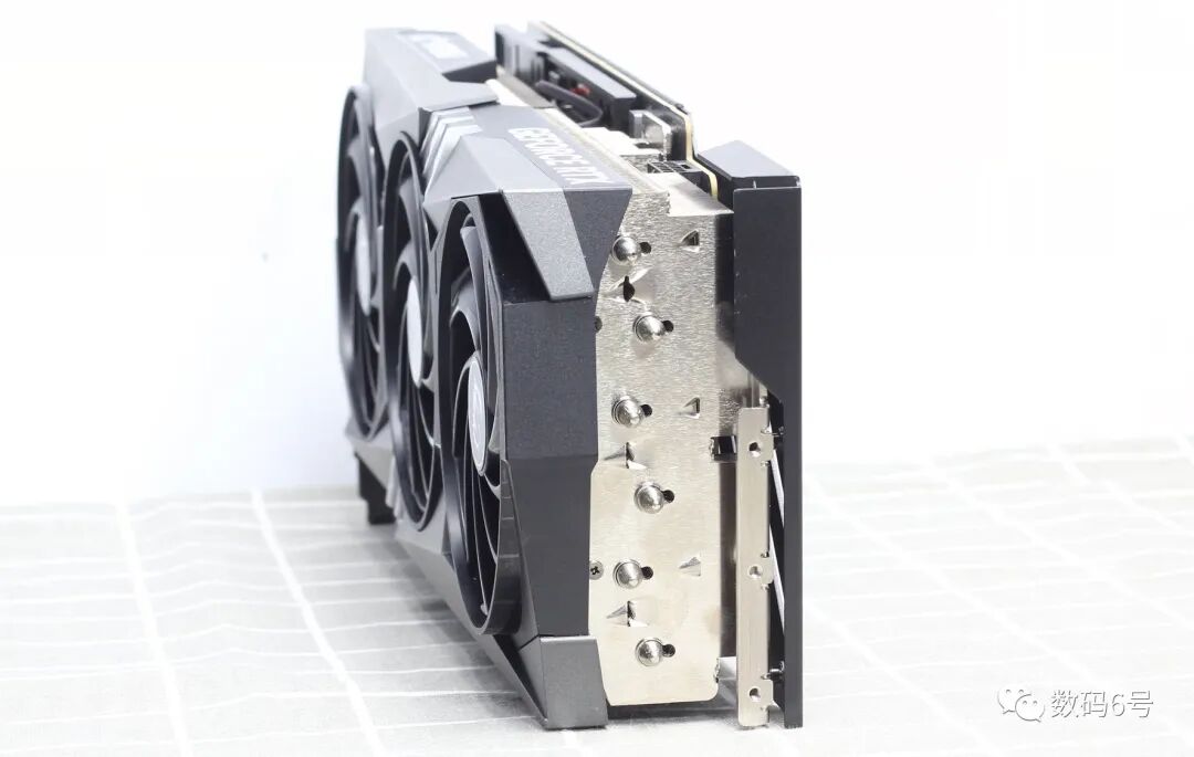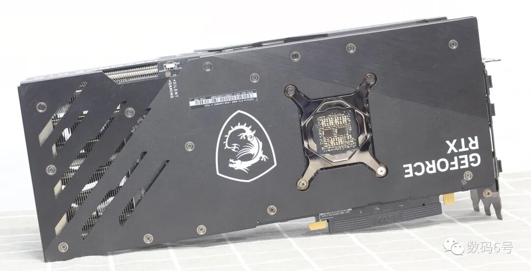 RTX4080 GAMINGX TRIO 16G魔龙在关键区域采用加强刚性金属抗弯带以提升显卡强度,同时还有三个DP和一个HDMI接口,可以看出它的厚度达到三个PCI槽之多。