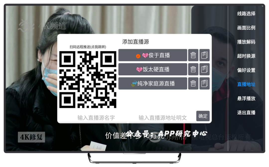 饭太硬、俊于直播里面的xx台还是可以的,流畅可看~ 支持查看频道的节目列表。
