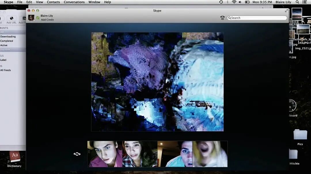 通过影片中三个拍摄纪录片的学生所记录下的影像,表现了一桩仿佛真实发生的失踪案件。观看者好似这些学生中的一员,跟着镜头体验着陌生小镇的种种灵异事件。强烈的临场感,极大地拉进了我们和影视作品的“审美距离”,令惊悚与我们近在咫尺。这份带入感着实令人毛骨悚然,却也是恐怖片导演梦寐以求的效果。此外,较低的成本,也使得伪纪录片这种形式在恐怖片中“性价比”极高。看过恐怖片的观众都知道,要做到惊悚吓人,画面的塑造与氛围营造都至关重要。普通恐怖片里奇异的布景、有视觉冲击力的特效,都是一笔不小的数目。其真实摇晃的镜头,就能最大程度营造出紧张悬疑的观感。况且,伪纪录片的叙事视点大多是跟随主人公的,这样的“非全知视角”带给了观众极大的不安全感。尤其很多有桌面电影性质的恐怖伪纪录片,更是“物美价廉”。可想而知其布景、转场、群演等等成本都可最大限度压缩。比如《解除好友》就是一部很好的,运用桌面电影形式去塑造惊悚感的小成本伪纪录片。值得一提的是,这部电影很好地利用了网络信号延迟导致的画面不清,来营造恐怖感。在电脑屏幕中扭曲变形的人物,具有的惊悚观感丝毫不亚于其他恐怖片中豪掷千金制作的鬼魅特效。![]()