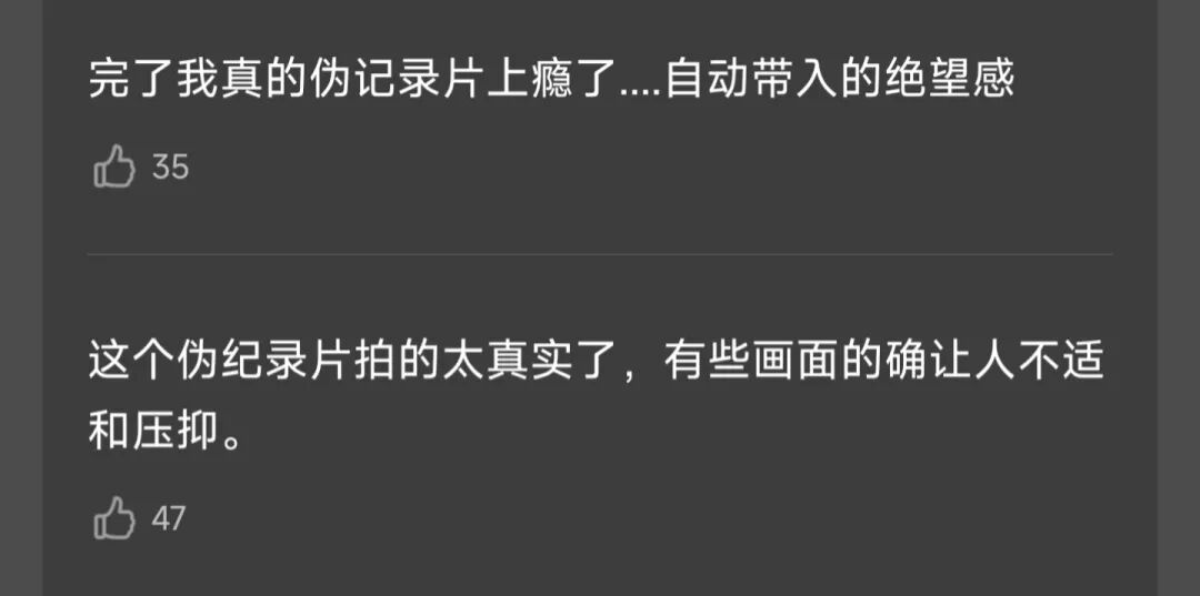 这部影片口碑大爆,但是也有许多观众反应,没看明白这部影片究竟是纪录片还是故事片。![]()