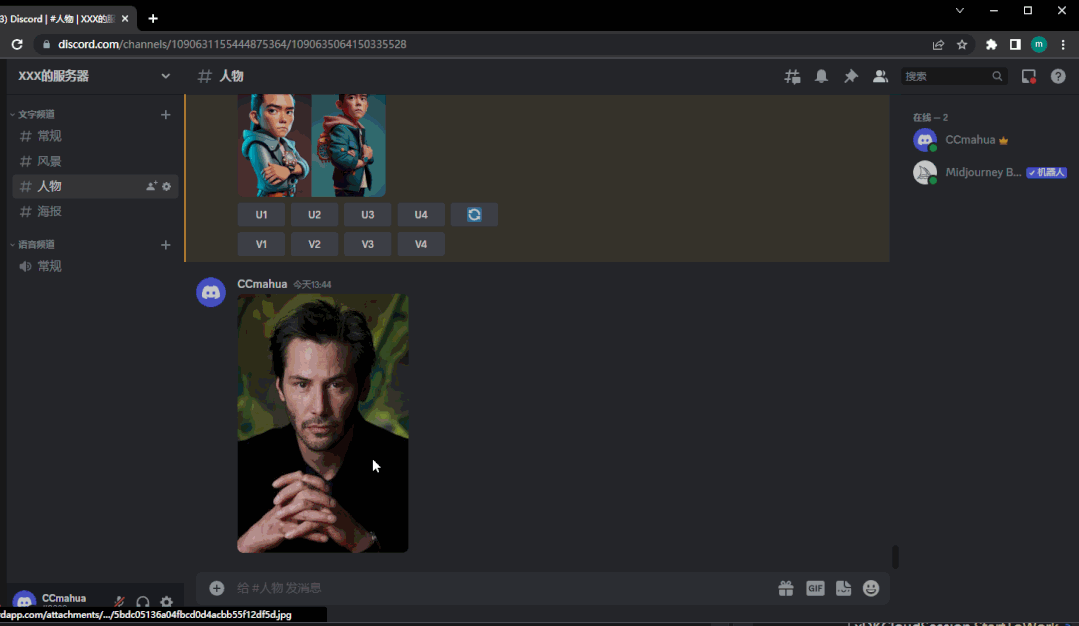我们准备好一张人像图,拖拽到Discord中,按下回车发送