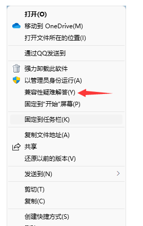 鼠标右键闪退软件的图标,在打开的菜单项中选择“兼容性疑难解答”