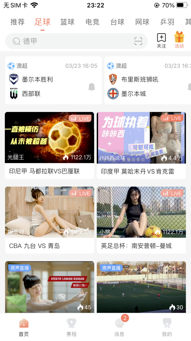 完全免费使用并且没有任何广告,安卓版、iOS版都有,支持投屏到大屏看各类赛事——比赛直播海量高清赛事,24小时轮播。比赛直播每天同步直播高清热门赛事,NBA、CBA、西甲、亚冠、欧冠、英超、中超、德甲、意甲、法甲、台球、网球、羽毛球、乒乓球等各大体育赛事。让你24小时看不停!体育明星陪你看直播,等待、薇仔说球、小桃子、小6、娜美呀、木昆侃球、炮哥说球、甜九、学友聊球、江湖故人等知名主播解说,更有高颜值女主播陪你一起看球聊天,实时互动零距离!高颜值女主播解说,精彩弹幕不停。过去,看球赛是一个人的事,现在,有风趣专业的主播、颜值美女主播特色主播给你实时解说;还有千万球友陪你一起聊天吐槽,飞舞的彩色弹幕、好玩的道具装备,酷炫礼物不停,互动弹幕不断,投屏电视畅享巨幕看球,更有赛况、分析、指数、阵容等专业的数据分析,是目前超好用超有趣的体育直播平台。主播粉丝群,与球友一起激情嗨聊。比赛直播独创的主播粉丝群,与主播一起即时聊天,探讨各大球星。主播会不定期为粉丝发放福利、精彩资讯、红单爆料等超好玩的一手资料。