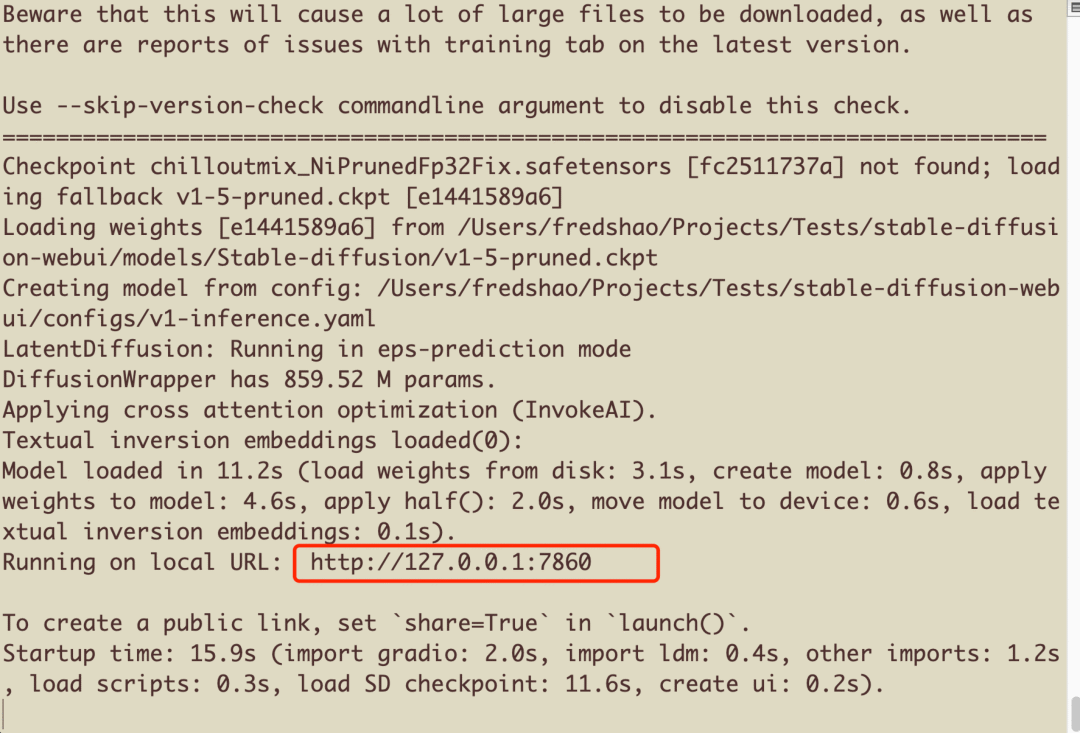 工程下载来下后,使用命令 cd stable-diffusion-webui 进入工程的主目录。然后再执行运行命令 ./webui.sh。注意,这个命令也是可能会非常的慢,或者失败,因为第一次运行,会下载一些其他的库,这个过程可能会失败很多次,取决于网络情况,我安装的时候,就装了好久。失败了就重新运行 ./webui.sh 即可,已经下载完的不会重复下载,放心好了。