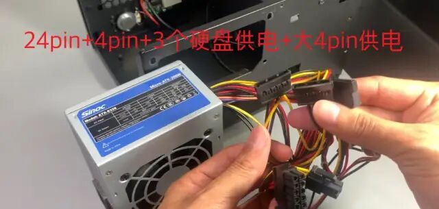 电源接口为24 pin+4 pin+3个硬盘供电线+大4 pin接口,至少可以带3块硬盘,这机箱也是被设计成原生3块硬盘(3.5*2+2.5*1),也算是量身定做了。