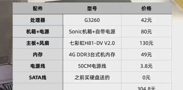 最后装机所有支出明细,不到300块吧,其实机箱、主板都买贵了,按现在15块的G3260,还可以少。