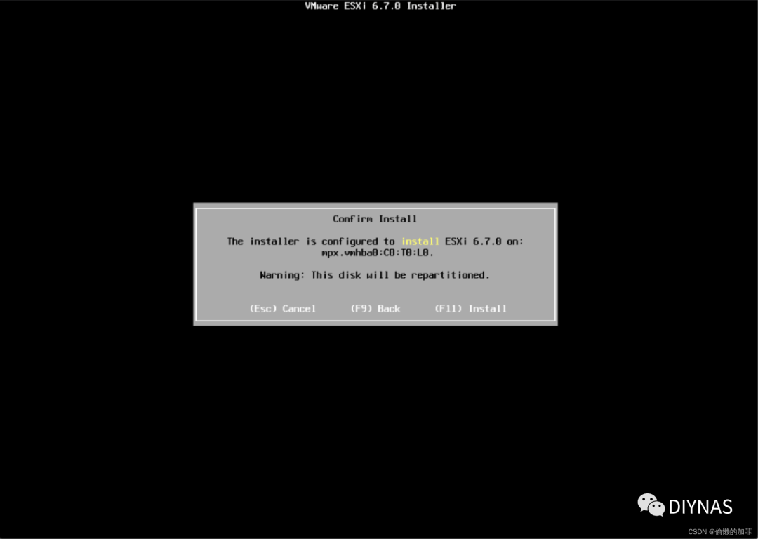 配置信息完成后,来到安装界面,然后按F11开始安装
