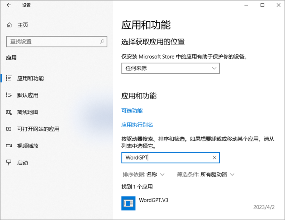 (1) 点击电脑左下角开始按钮或win键,找到设置图标(3) 点击应用,在应用和功能界面,按功能名称“WordGPT”搜索功能(1) 软件使用过程中,可能会由于网络问题,导致出现弹窗,正常情况下,关闭弹窗直接忽略,继续进行文案生成操作;(2) 生成过程中,如操作过快,会提示30s等待,可稍后操作即可;(3) 生成过程中,由于软件调用功能、生成大段文字等,会消耗相应的时间,请大家稍作等待;