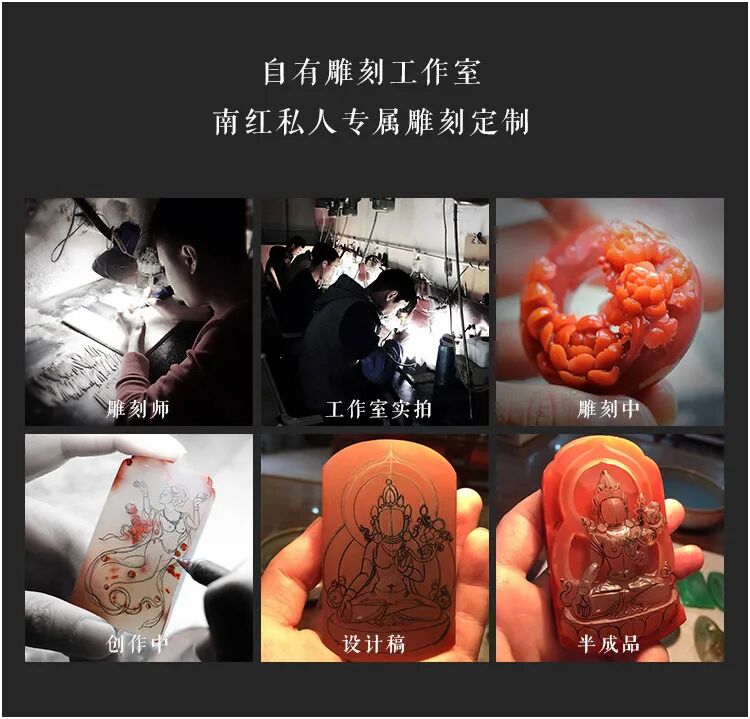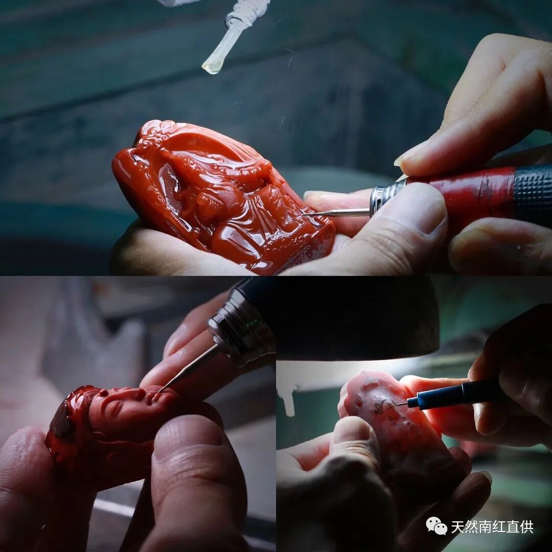好料也要精心 雕琢,我们雕刻大师都拥有几十年经验,对每一个制作细节都严格把控,精心雕刻。历经几十道工序,才能完成一件南红成品。