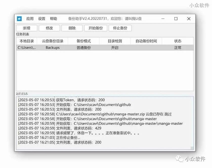 所以在设置备份任务之后,只需要让它一直后台运行着就行了。