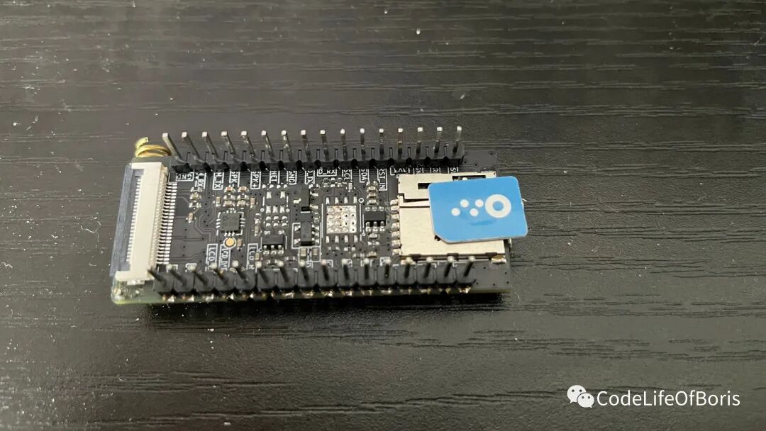 然后SIM卡芯片朝板子,缺口朝内,插进Air780e的SIM卡槽。