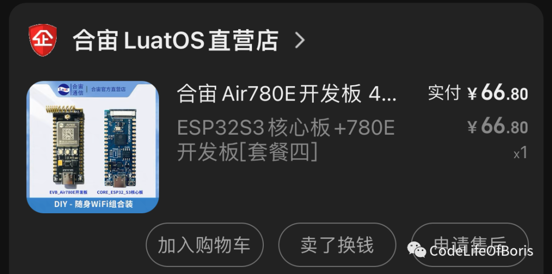 合宙只给送了排针,没有排母(甚至不卖这玩意),但是直接把ESP32S3和Air780e焊死显然不合适,所以只能自己再买排母。¥15一盒里面有5对,所以实际分摊下来只有¥3。