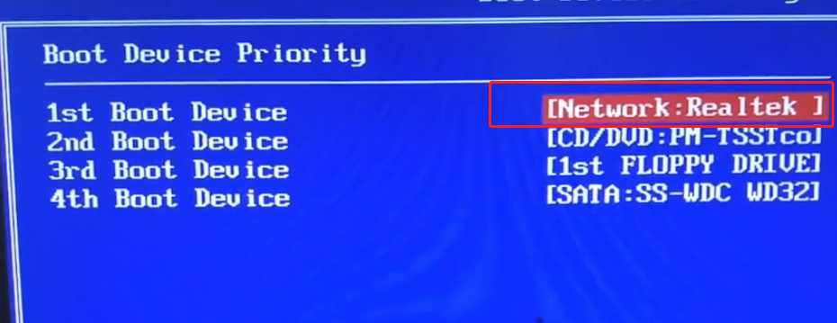 打开电脑进入bios选项,旧电脑选择从network启动,新电脑选择从pxe启动。