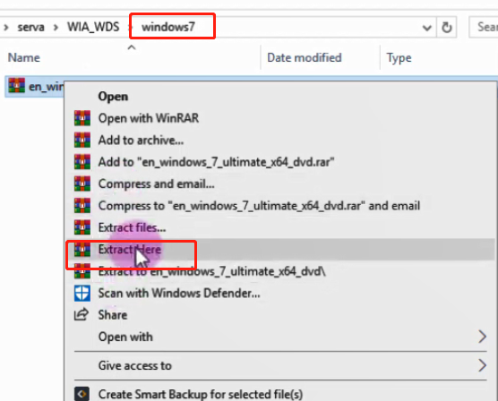 将win7镜像文件复制到WIA_WDS下面,新建一个windows7文件夹,将其复制到此文件夹中。