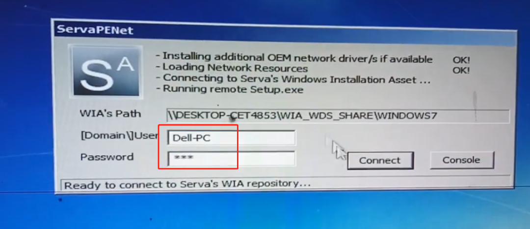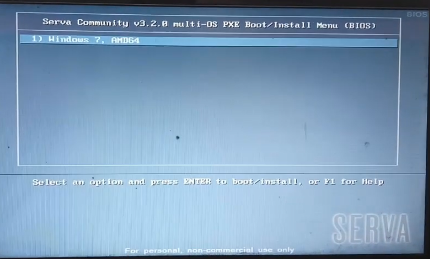 获取ip地址之后加载serval pxe服务器,选择windows7安装。