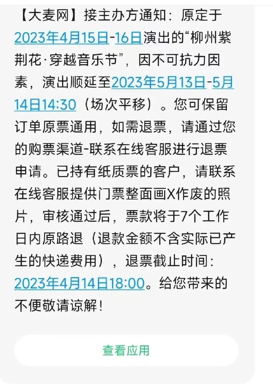 主办方还是很“人性化”的给了十天的缓冲时间嘛,让粉丝可以退门票、车票和酒店。