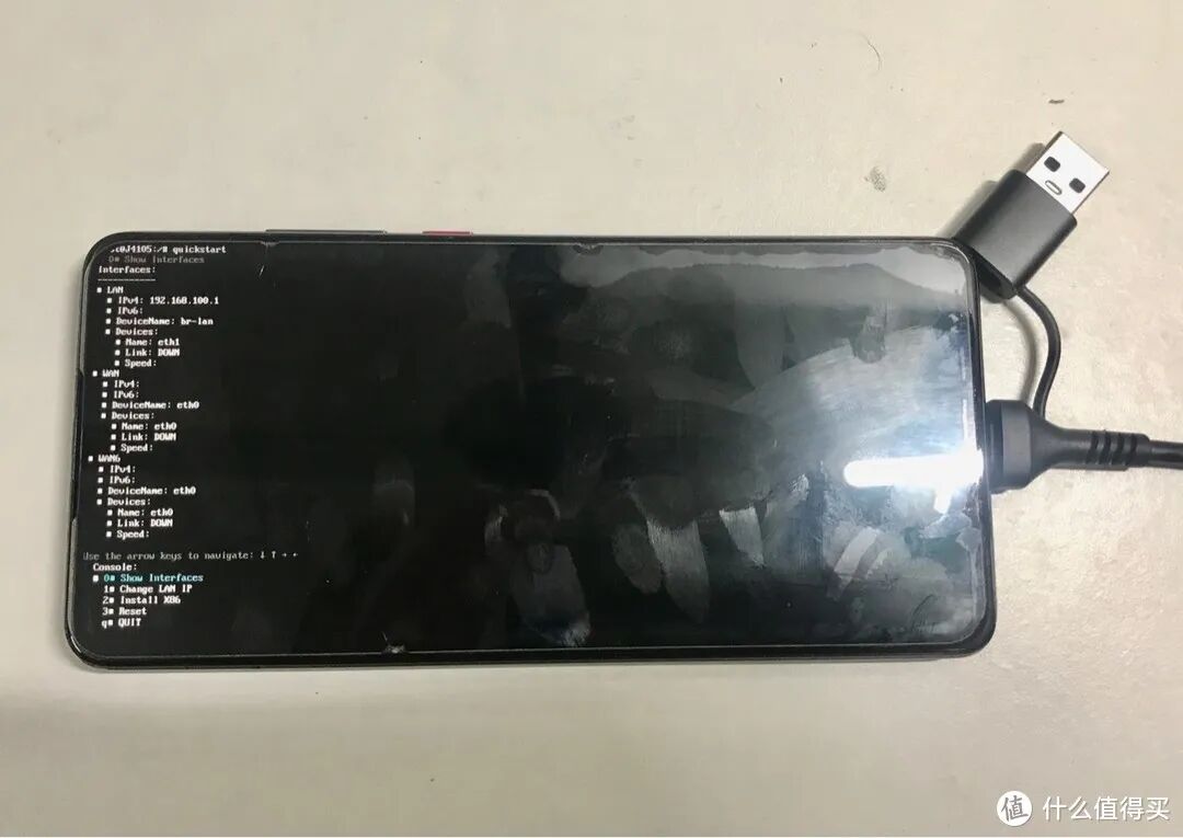 一端连接小主机的HDMI口,另一端直接连接安卓手机C口,手机就可以直接充当显示器使用,临时配置NAS、x86路由设备非常方便,省了买便携显示器的钱(好像现在的便携显示器也没那么贵了):