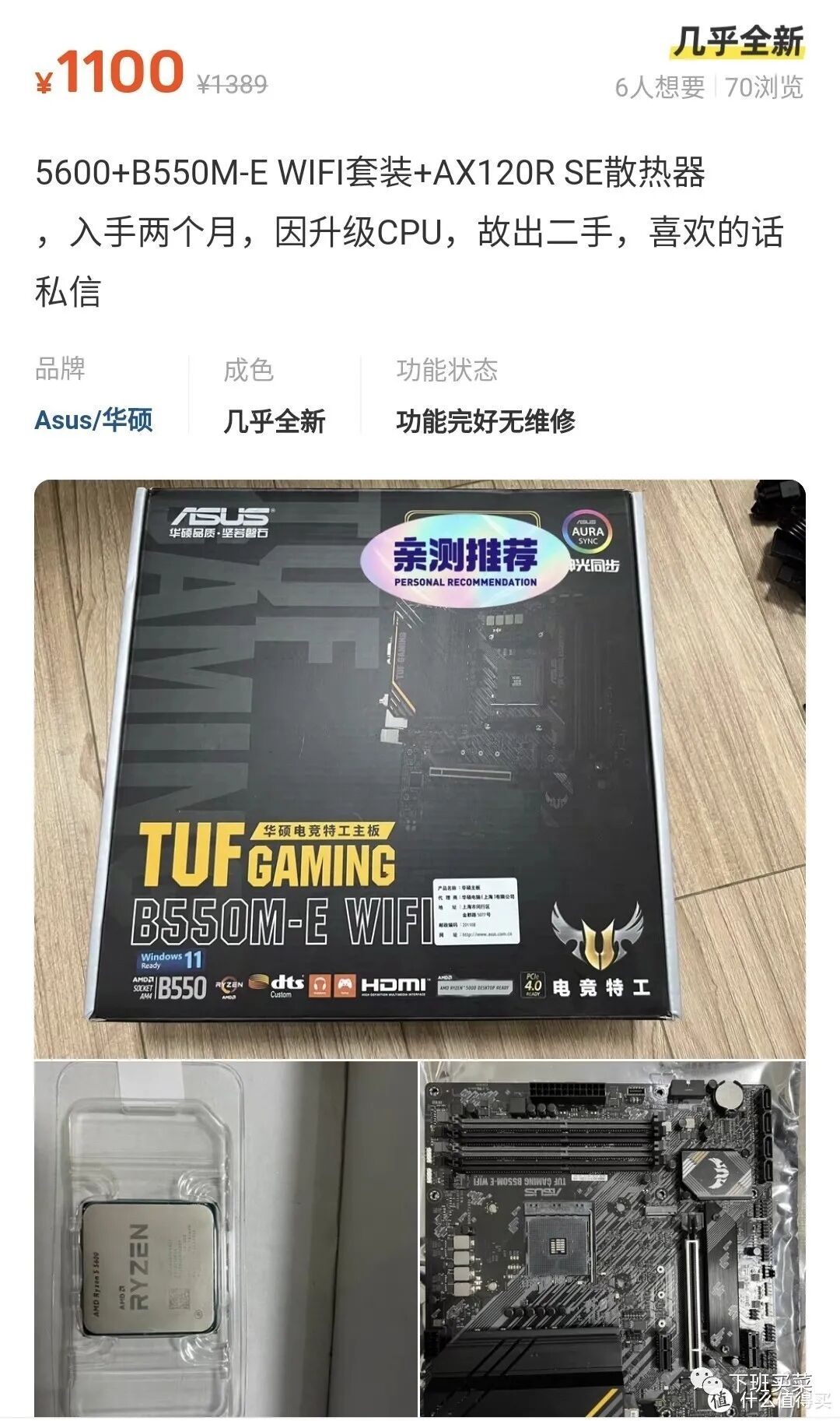 我说一下二手板U正常的价格吧:3月份5600+华硕B550M-E WIFI版多多1300不到。今天碰到个人卖家卖1100还带一个利民AX20R散热,这才是二手好价。不过这种好价一般贩子会收去,毕竟他们要继续抬价。