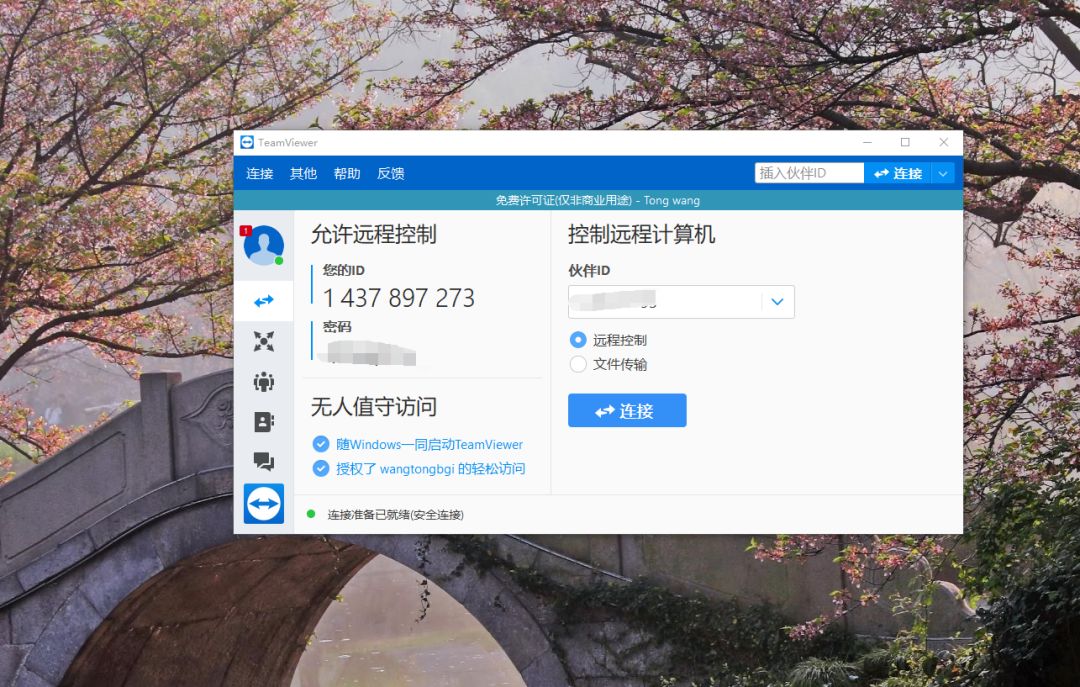TeamViewer是老牌的远程连接工具了,对于个人用户可以免费试用。可以快速突破任何防火墙,并且可以进行桌面共享和文件传输。使用起来非常简单。只需要两台设备同时安装并运行,只需要输入你的伙伴的ID到TeamViewer,然后就会立即建立起连接。也可以登录账号,进行无人值守的远程控制。相比于其他一众远程连接工具,teamviewe连接快速稳定,非常好用。