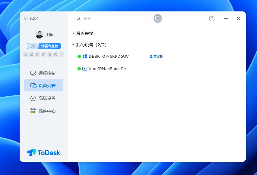使用同一个账号登录,就可以看到设备列表。当然也可以使用设备代码,这种可以作为远程协助使用。