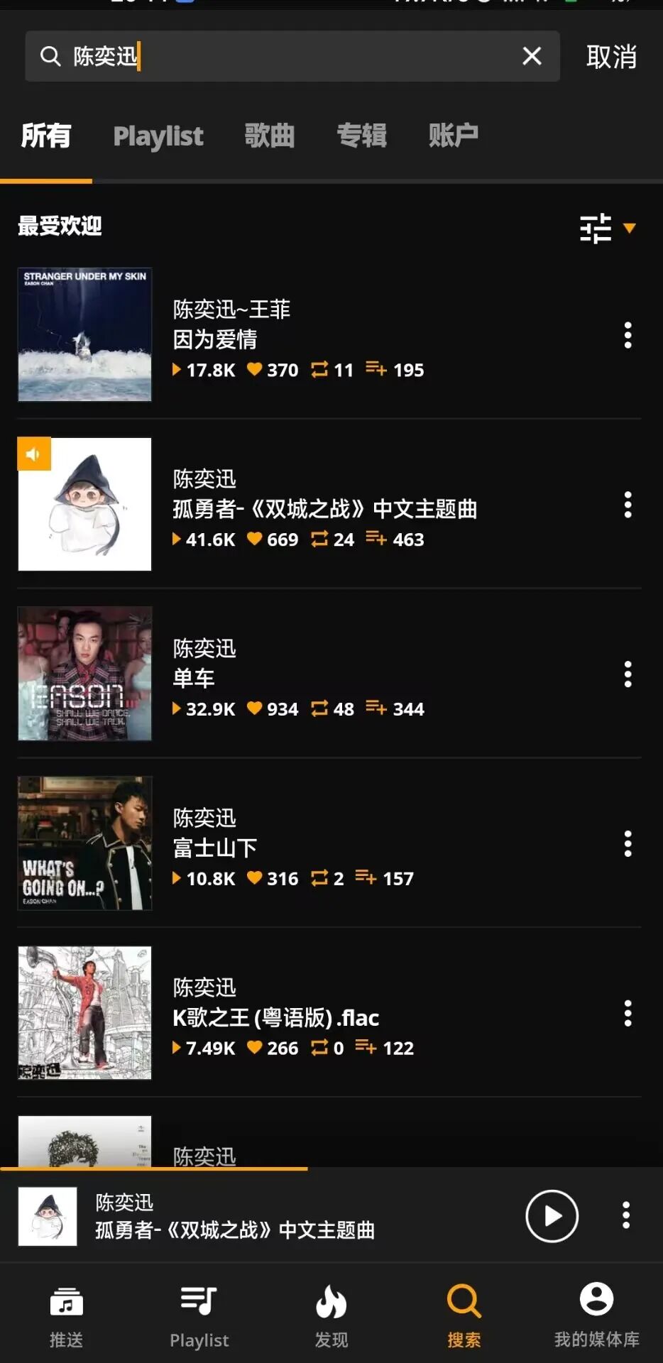 搜索搜个中文毫无压力,搜歌名或者作者名都没问题