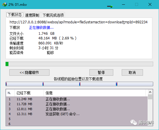 系统自动跳到浏览器,调用浏览器的多线程下载工具