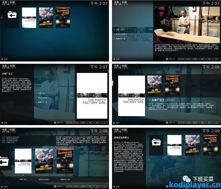 点击视图类型,可依次切换电影列表显示,有:墙、同人画、列表、海报、平移、信息墙、宽列表模式,可选择自己喜欢的Kodi海报墙展示方式。