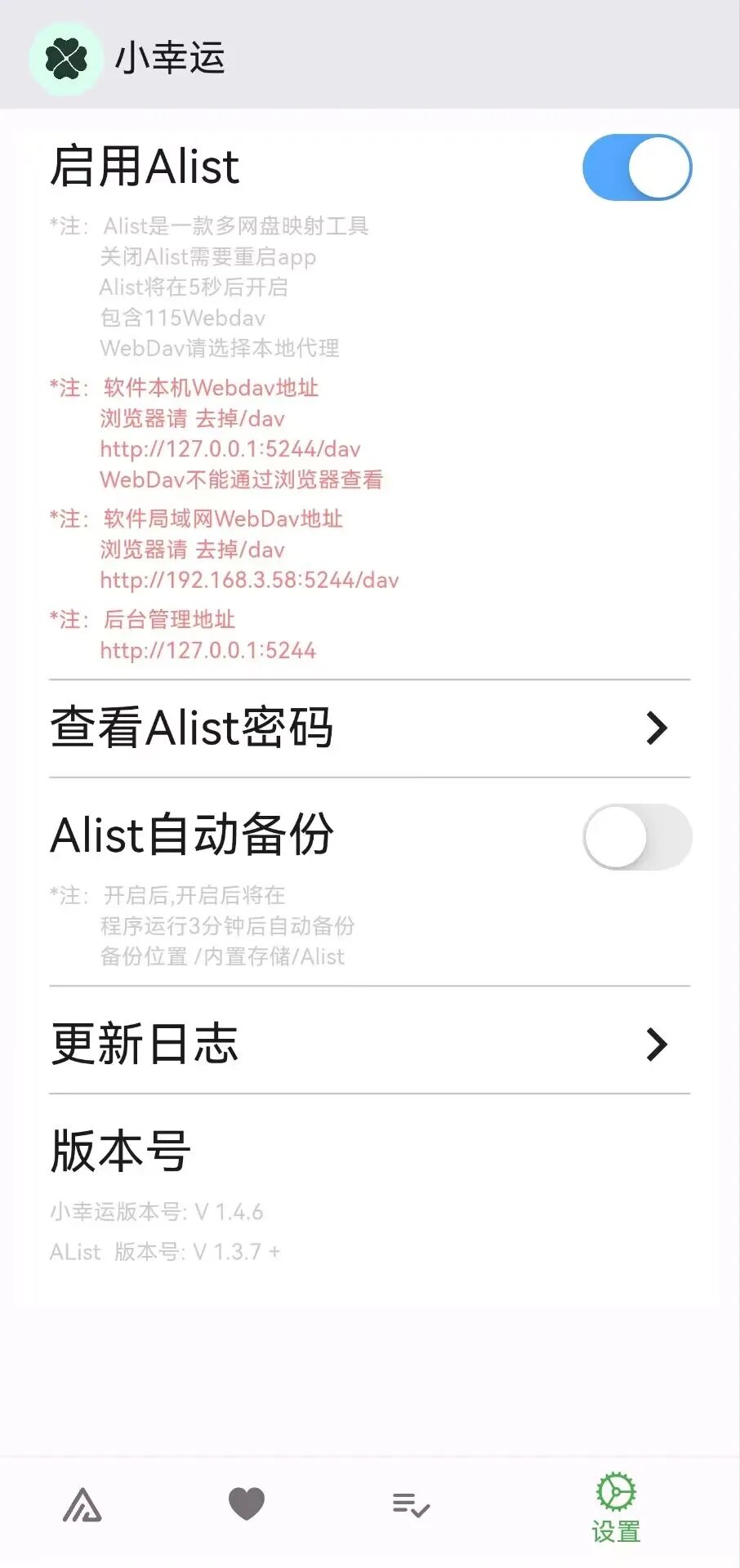 以前只能在电脑上运行Alist,还是不如手机方便,这下有115小幸运APP,手机上也能随便玩了!点击一键复制AlistV3规则口令