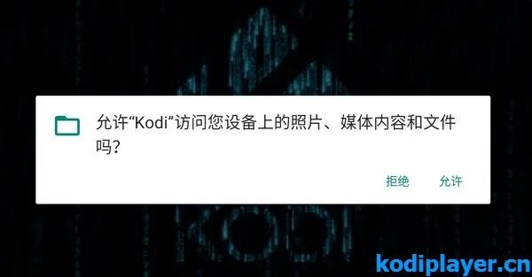 在安卓设备安装Kodi,初次运行时提示“Kodi requires access to your device media and files to function.Please allow this via the following dialogue box or Kodi will exit.”