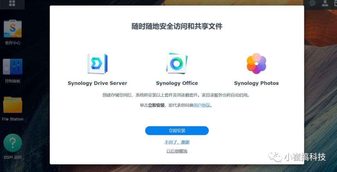 配置完储存空间后就可以愉快的使用自己的群晖系统了,其他配置和老版本没有区别,可以看看我往期NAS系列的文章