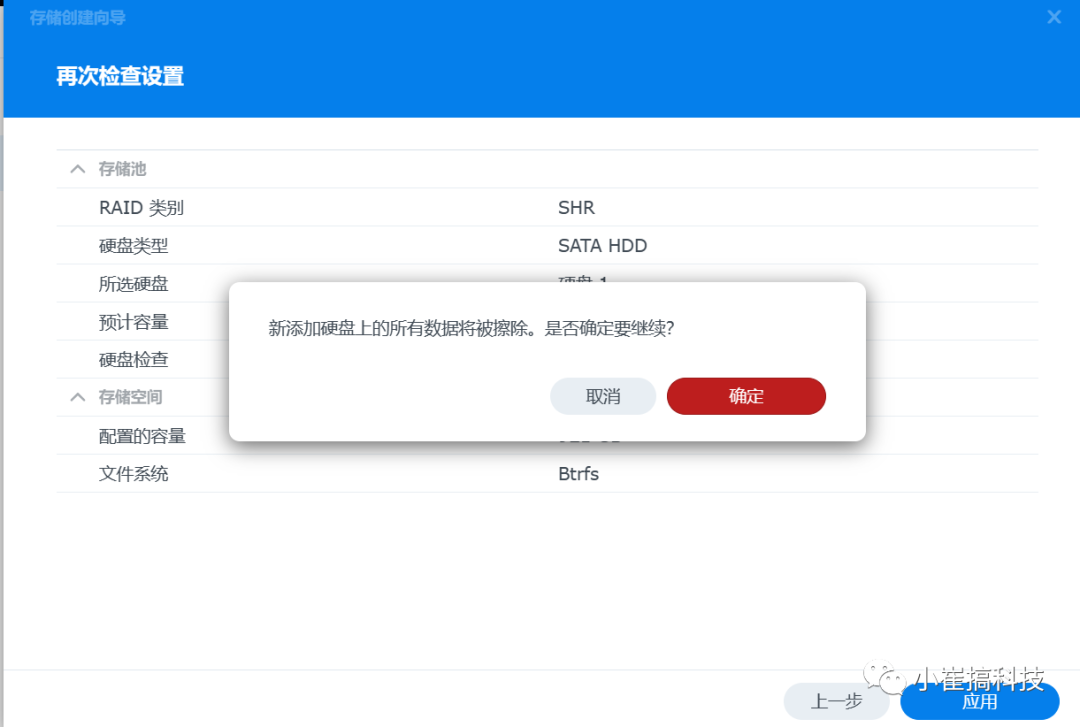 小编只插了一个机械硬盘,就选择 SHR 类别