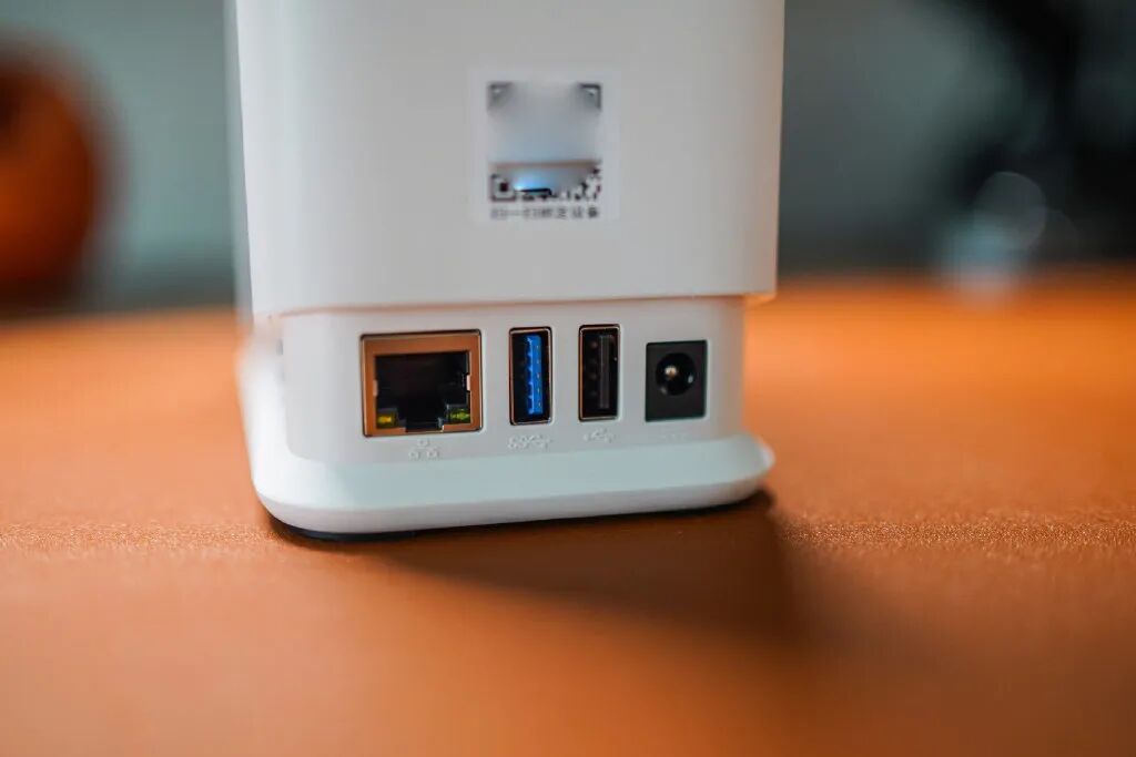 背面则是接口区,配置了一个千兆网口、电源以及2个不同性能定位的USB-A口,作为入门级产品来说够用,包括UPS等都能管上。如果作为一个挑剔的老用户挑个刺,希望未来能把HDMI也丰富上,可以直接输出影音。
