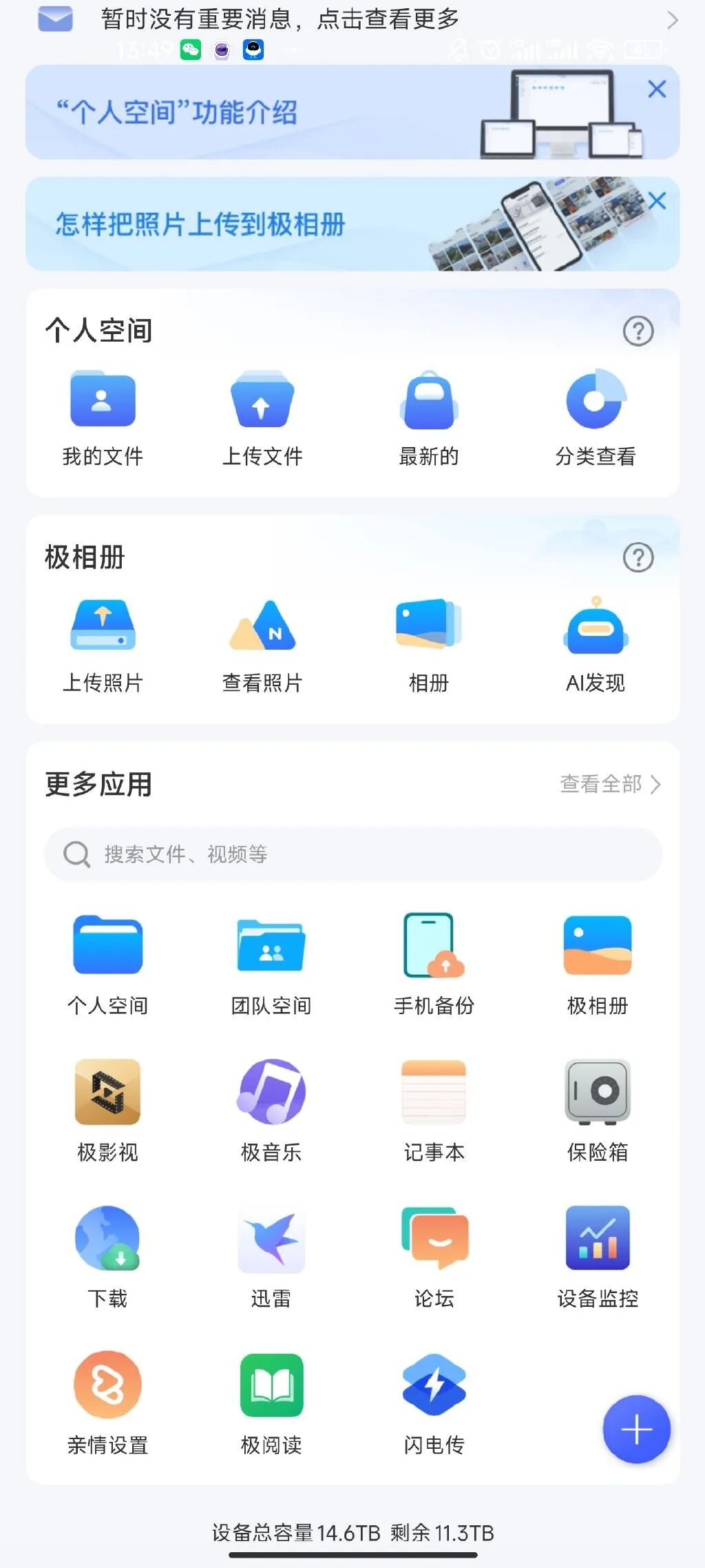 本身具有设备和系统架构,有一定可玩性,除了大号网盘也能进行影音、文字等多种内容管理