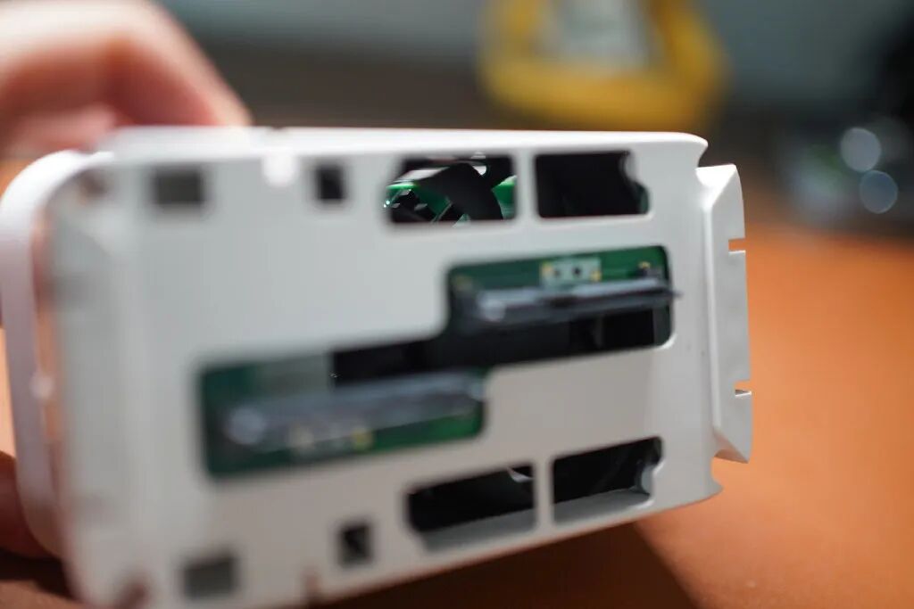 整体设备是2盘位的设计,底座垂直风道配置的风扇控制整体设备温度,实测下来全程的温度控制都非常不错,也没有太大的风扇噪音。