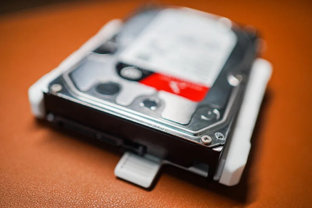 一般来说,出于数据的安全性,我建议在硬盘上尽可能选品质更好的产品,比如我们家这块招牌的希捷酷狼,基本上没出过问题。硬盘的安装整体上也非常简单,直接按孔位对齐放置塞进去就行了,没有任何卡手的卡扣或者固定件设计。