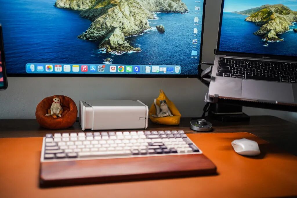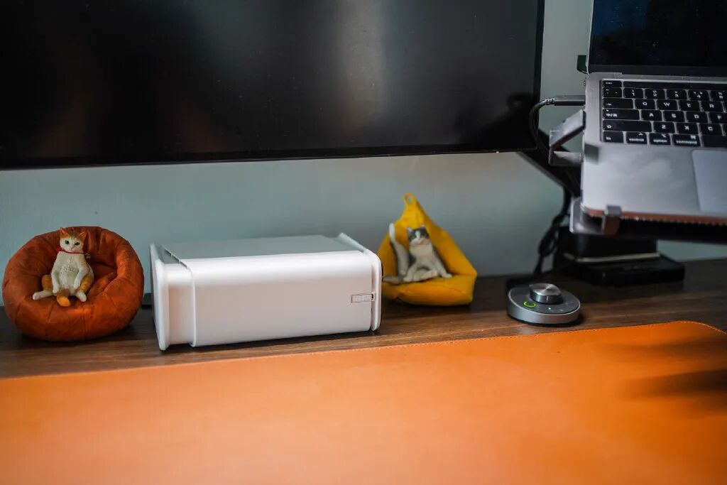 和之前相比,这次的Q2C支持两种不同的放置模式,可以横向也可以竖向放置,对于小桌面来说非常友好,融入我的黑白灰桌搭,毫无压力。