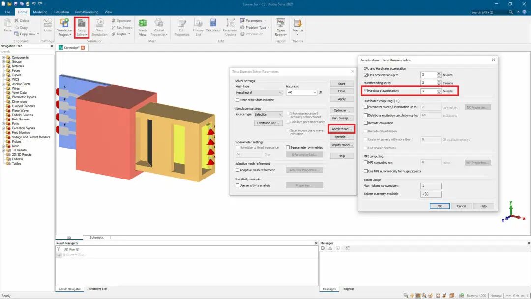 然后再在CST的求解器里勾选「Hardware acceleration」以启用GPU加速。