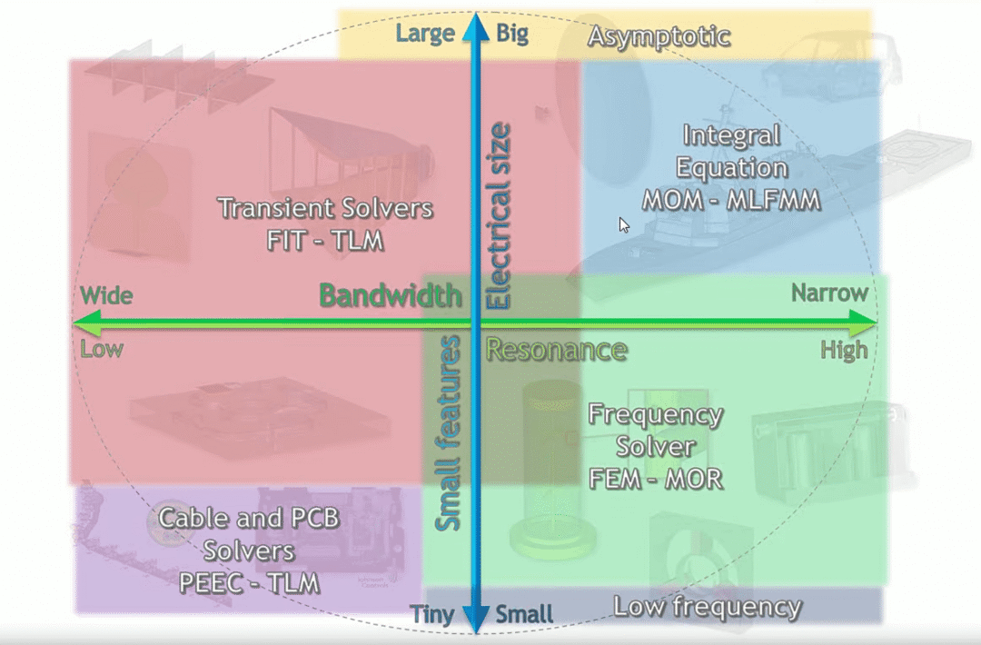 麦克斯韦方程完整描述了电磁场问题,但麦克斯韦方程只在非常简单的情况下才能够解析求解。为了解决实际问题,需要借助数学方法并依托计算机实现来找到近似解。在处理及寻找麦克斯韦方程组的解时,区分静电场、静磁场、准静态场和快速变化场等特定问题的分类被证明是有益的。所以根据所处理信号波长的不同,就有了各种不同的电磁算法。