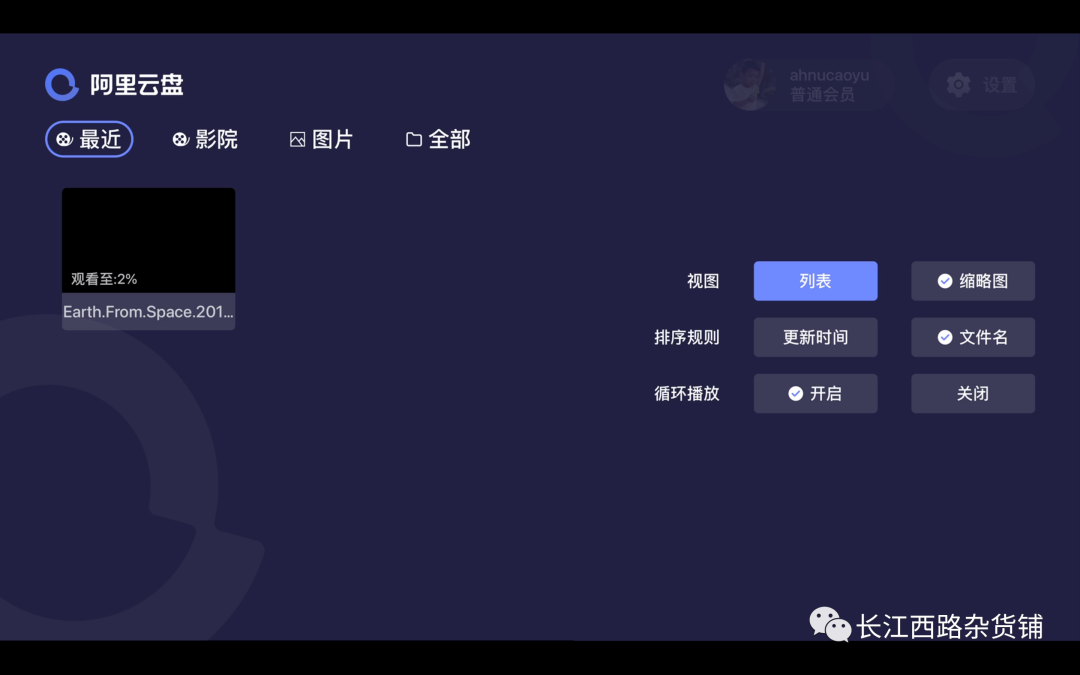 在设置中心也有一些系统级设置,目前有视图/排序规则/循环播放三个选项。