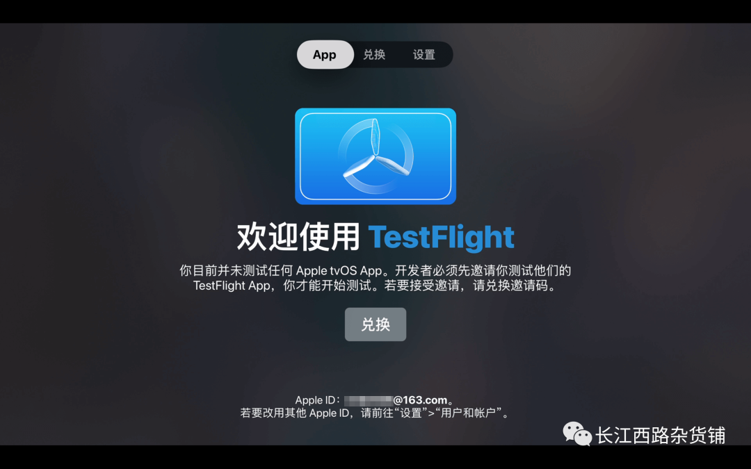 打开AppleTV后,打开TestFlight软件,利用“兑换”方式获取到这个App