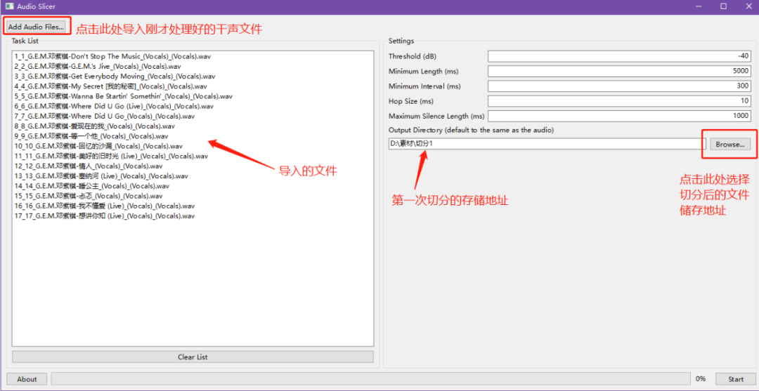 Audio Slicer主要是消除音频中的空白部分,并进行初步的音频分段切割。