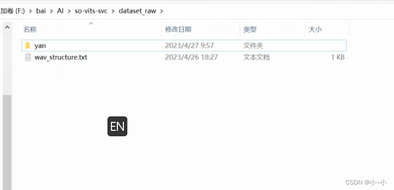 如下所示,这里我把所有切片好的声音文件放到了 yan 的文件夹下,要用拼音或者英文命名。