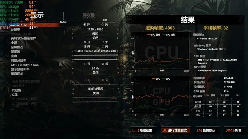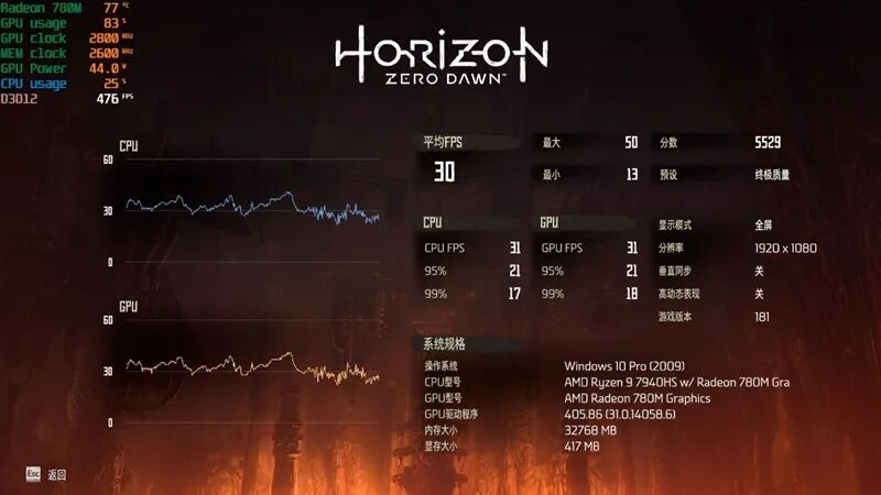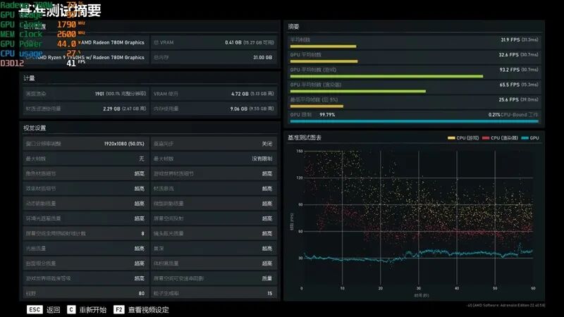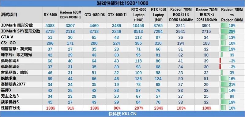 五、Radeon 780M游戏性能测试:比Radeon 680M快了10%
